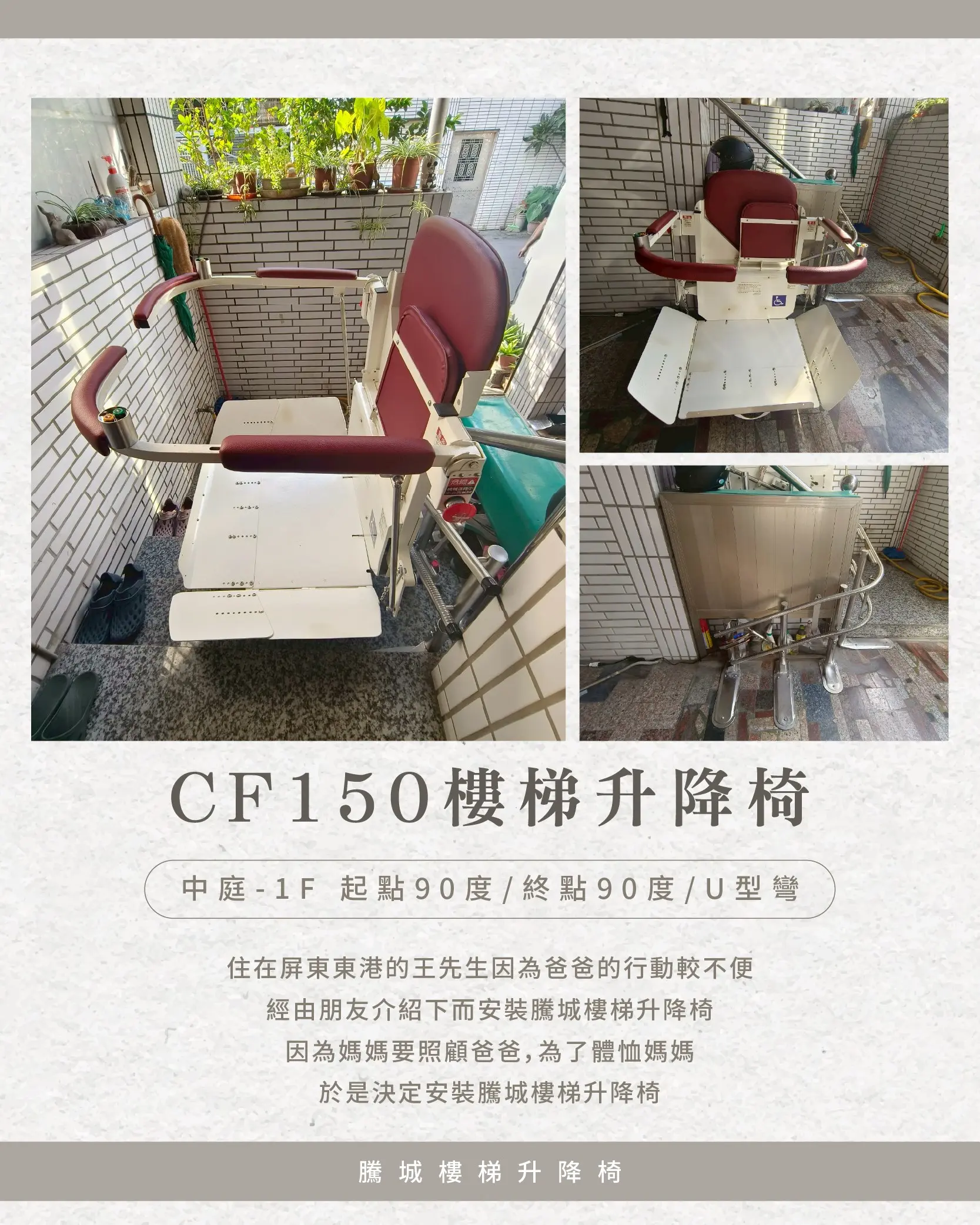 在朋友的推薦下,他選擇了 騰城CF150樓梯升降椅。