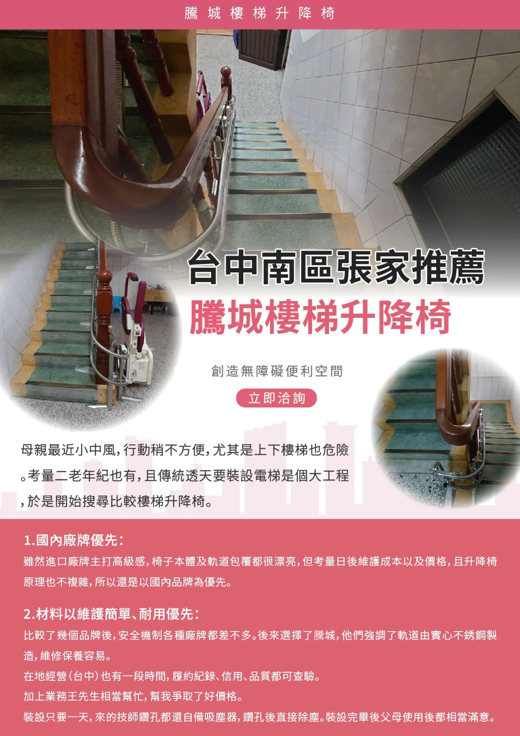傳統透天要裝設電梯是個大工程,於是開始搜尋比較樓梯升降椅