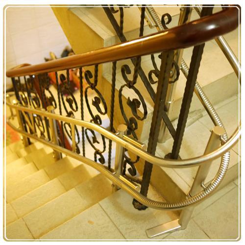 - 周家屬於傳統透天厝,扶手與牆面距離80多公分,屬於較小型的寬度 為讓平時樓梯間行走順暢,而使原扶手與我們實心軌道兩側僅距離7公分,盡可能減少動線上的阻礙也為了不讓扁腳凸出太多,將扁腳設計於柱旁的凹面處,減少柱腳與樓梯間的壓迫感