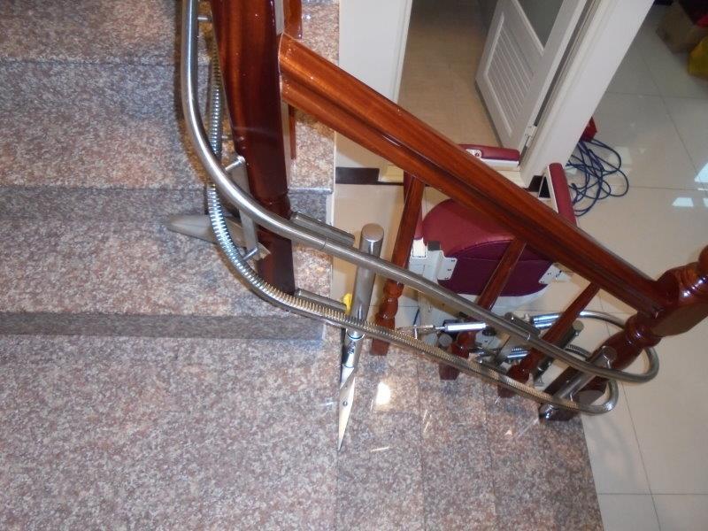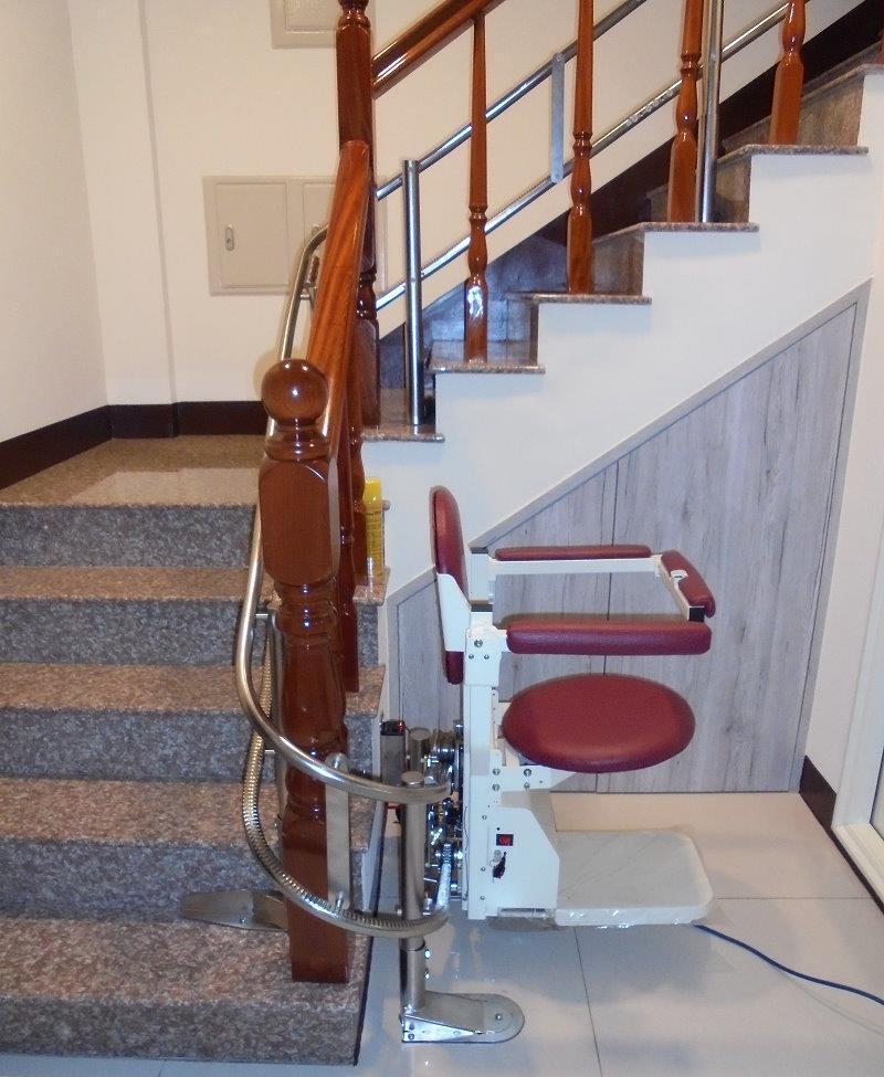 劉先生家樓梯與軌道、柱腳等等與材質色系的搭配,整體既質樸且耐用~ 而90度轉角的貼近,全是因為實心軌道以及工程師精密的規劃與設計! 再搭配紅色沙發座椅,是目前最為暢銷的款式之一 既大方又不失典雅,非常有質感,而且百搭!