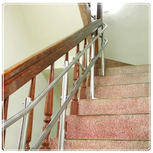 - 沿著樓梯向上設置的爬梯機器 大約2至3階一個柱腳 且柱腳依照力學原理設計 讓軌道不用依附扶手牆壁或大量螺絲 也能穩穩承載
