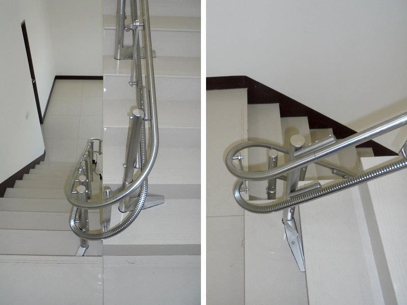 - 轉彎,在軌道製程上比直軌複雜得多 為了使軌道能更貼近扶手,採用實心不鏽鋼 為了讓軌道不變型好保養,成就齒排與軌道一體成型的設計 經過設計,扶手與彎軌樓梯升降椅超貼近,節省不少樓梯行動空間!