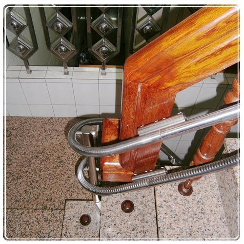 - 轉彎,在軌道製程上比直軌複雜得多 為了使軌道能更貼近扶手,採用實心不鏽鋼 為了讓軌道不變型好保養,成就齒排與軌道一體成型的設計 經過設計,扶手與彎軌樓梯升降椅超貼近,節省不少樓梯行動空間!