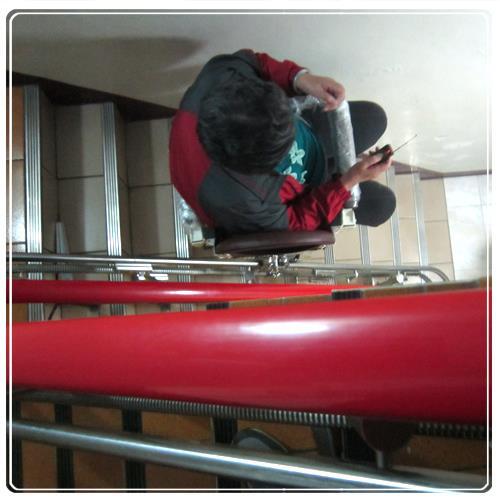 - 因為呂家樓梯寬度真是不一般的窄 因此即使裝設完成 仍需用側坐之姿 ( 原墊背處在身體側方 ) 以防膝蓋因太貼近牆壁而受到傷害